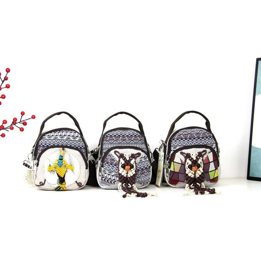 This small fresh two-layer oblique cross shoulder bag is perfect for daily use. It features a mini wax rope woven design and a cotton and linen material.