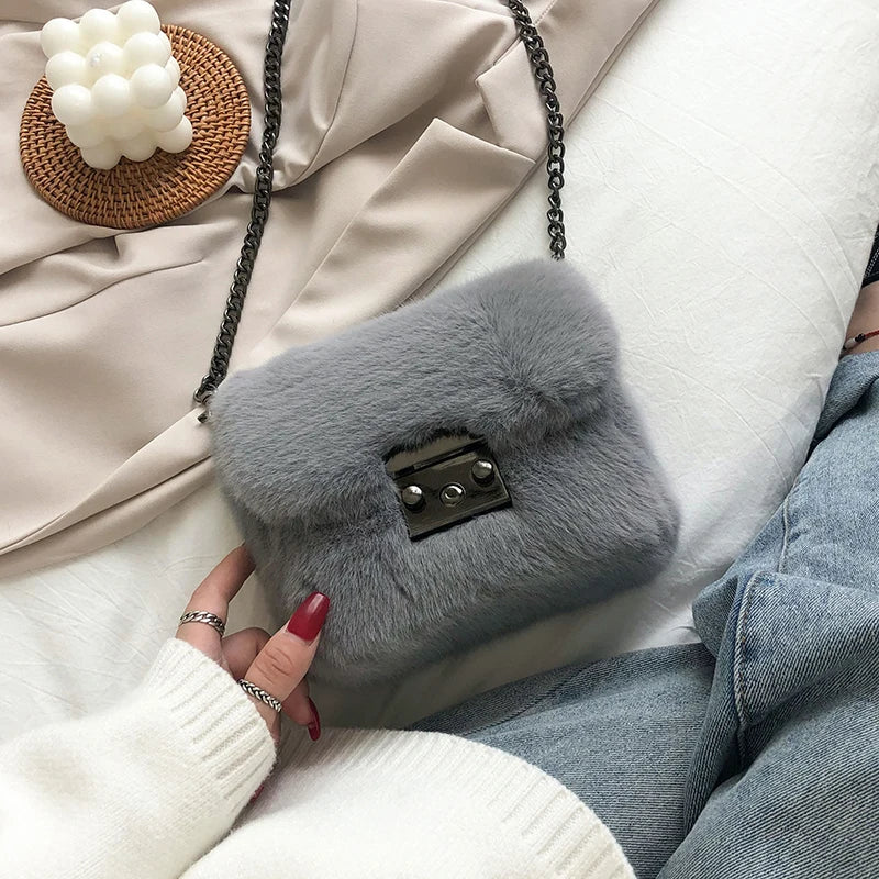 Elevate your style with this luxurious mink fur bag that can be hand-carried or worn as a one-shoulder messenger bag.