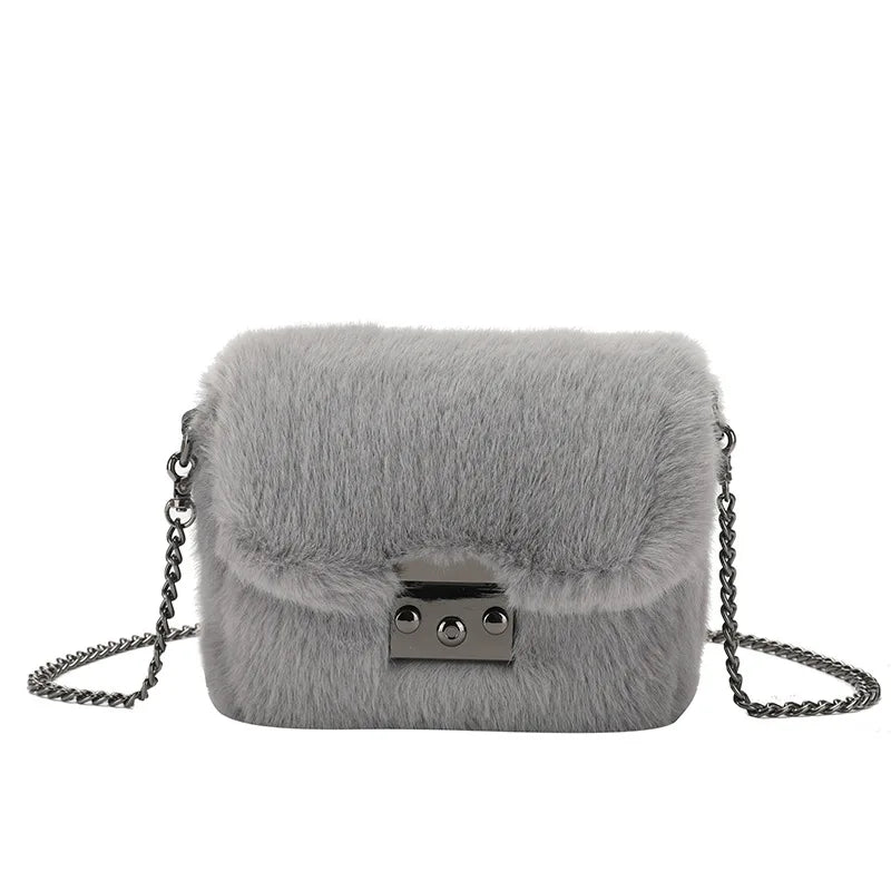 Mink Fur Small Square Bag Hand-Carrying One-Shoulder Messenger Bag