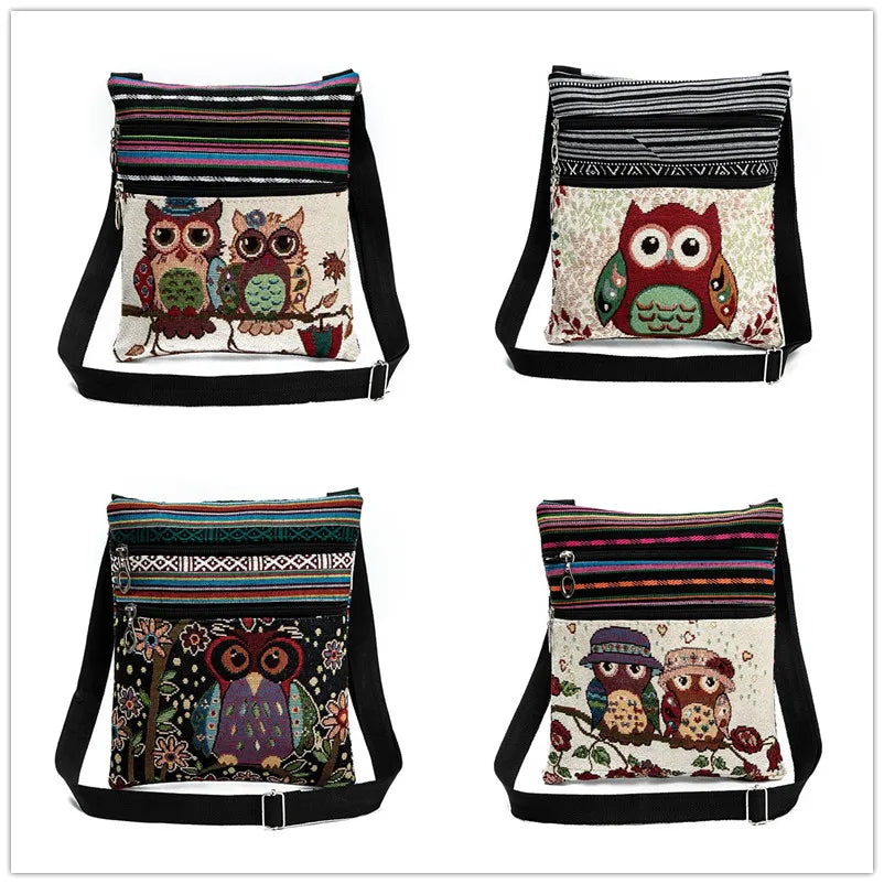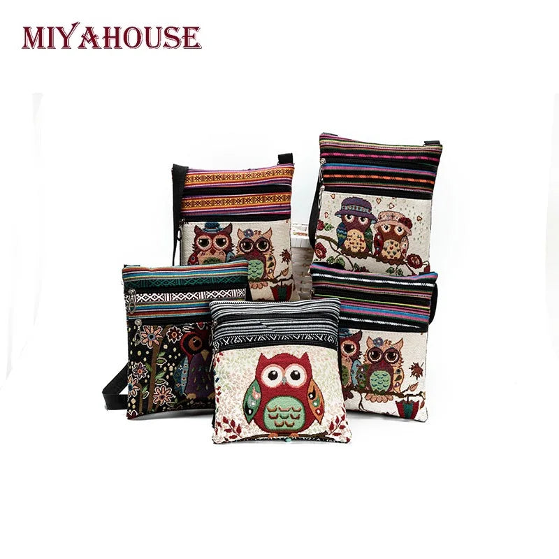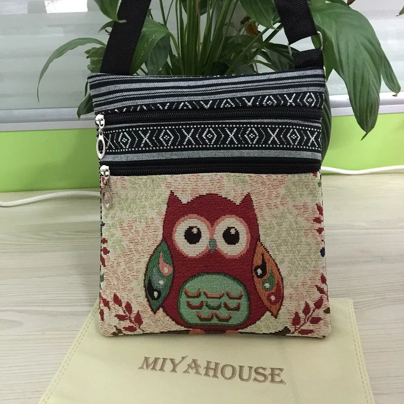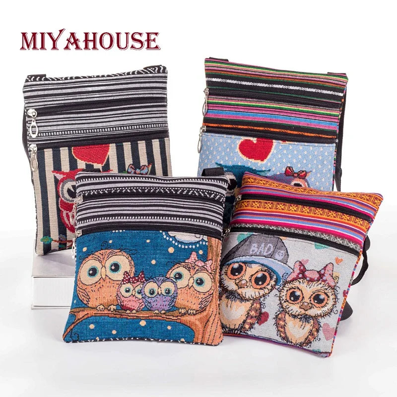 Miyahuose Owl Printed Mini Shoulder Bag Lady Small Double Zipper