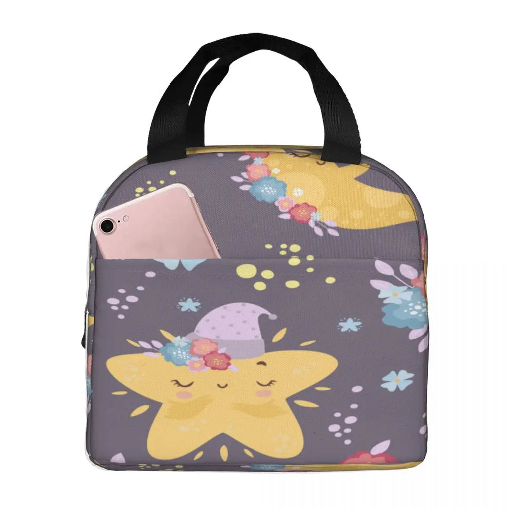 Moon Stars Lunch Bag Thermal Insulated Tote Cooler Bento Pouch Food Storage