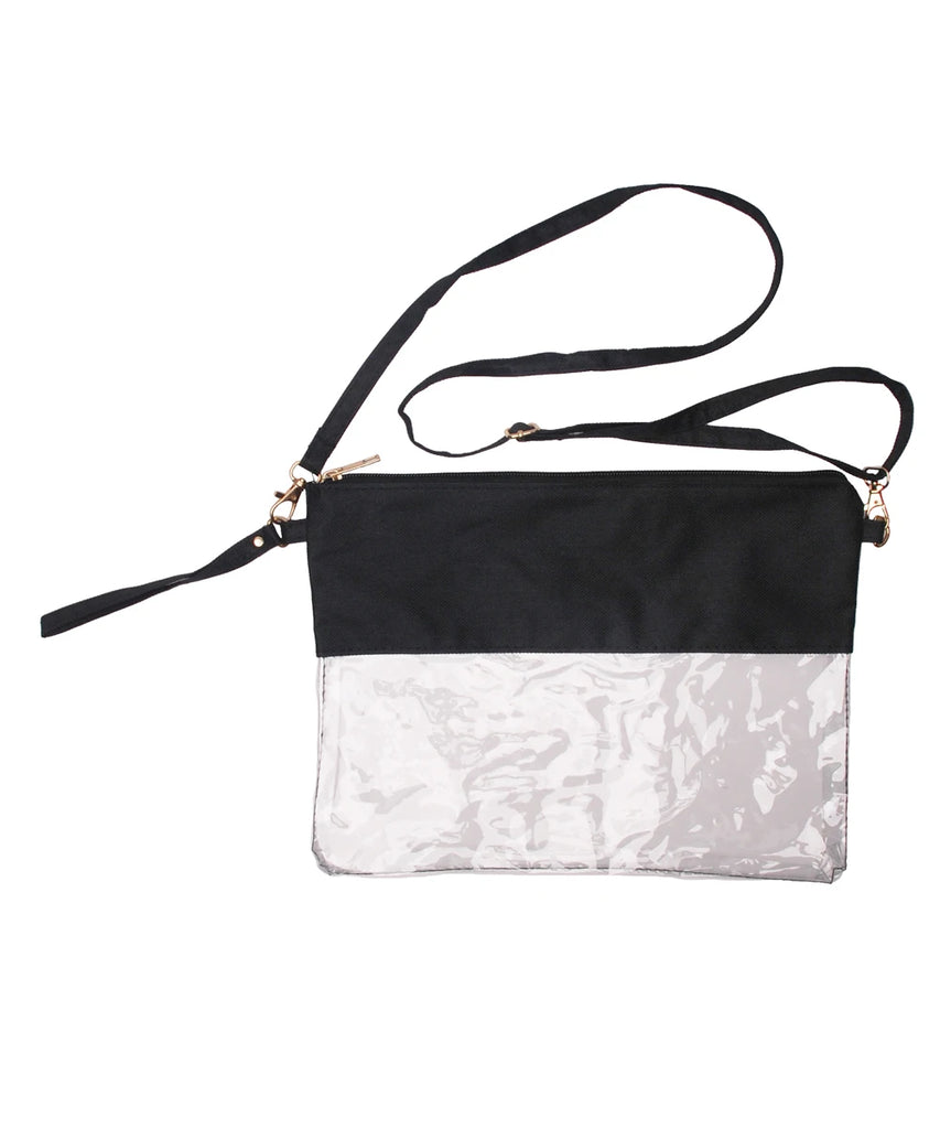 Stay stylish and compliant with this multicolor transparent stadium bag that is perfect for games, concerts, and events. It features a secure zipper closure and a convenient crossbody wristlet design.