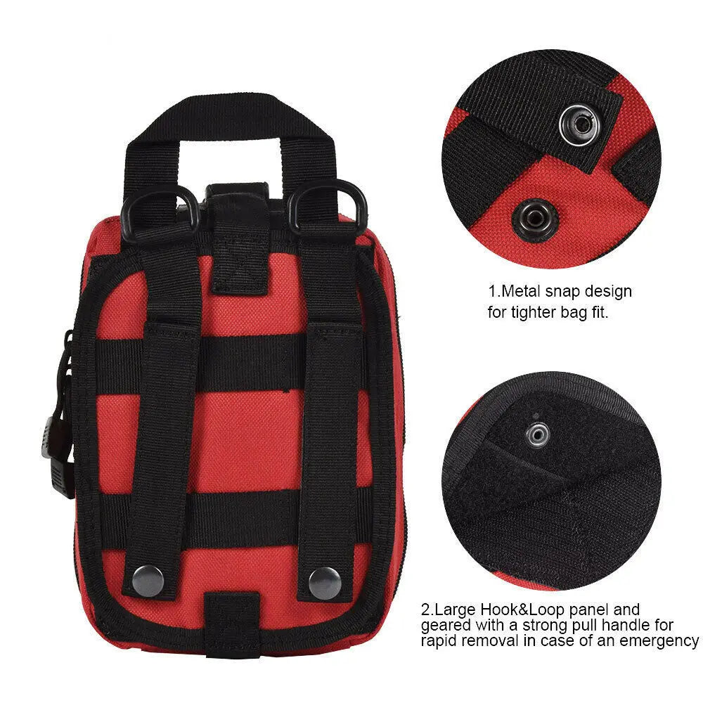 This empty first aid kit bag is perfect for traveling, camping, sports, medical emergencies, and survival situations. It is compact and lightweight, making it easy to carry with you wherever you go.