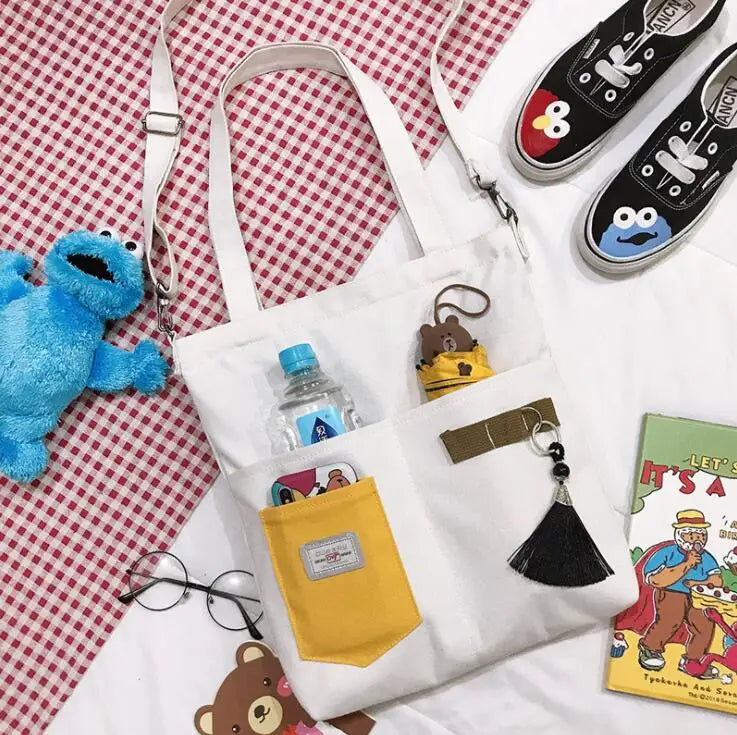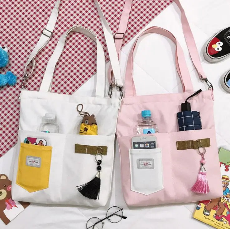 NONSAR Canvas Tote Bag with Tassel Student Tutoring Shoulder School Bag