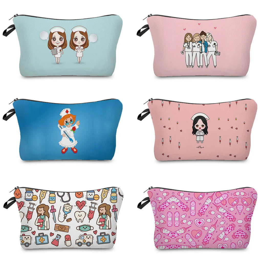 Nurse Cartoon Printed Cosmetic Bag Waterproof Makeup Storage Pouch