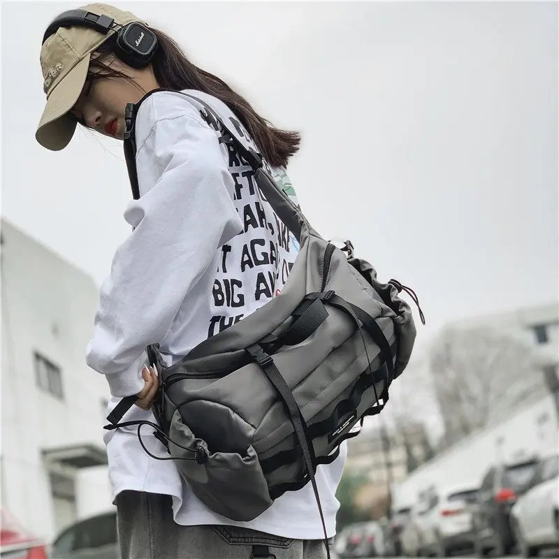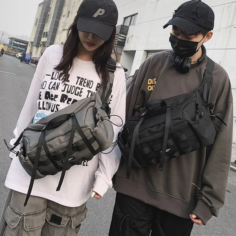 Stay organized on the go with this versatile and functional chest pack shoulder bag. Made of durable nylon, this unisex bag is perfect for outdoor activities and hip hop style.