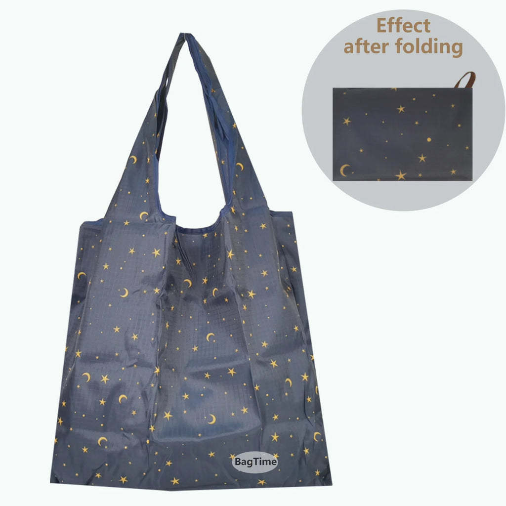 This foldable medium tote bag is perfect for all your shopping needs. Made from sturdy nylon material, it is eco-friendly and machine washable. Take it with you on your travels or use it for everyday grocery shopping.