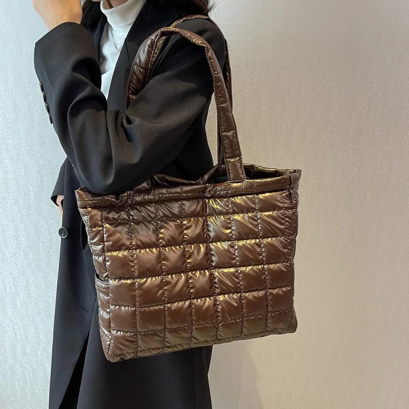 Nylon Quilted Shoulder Tote Large Capacity Cotton Padded Solid Top-handle Bag