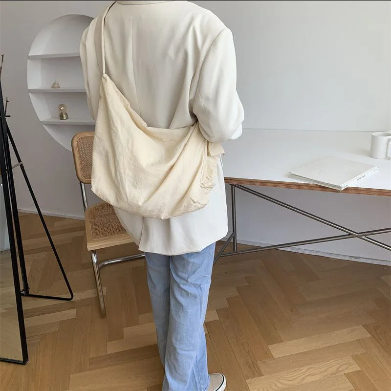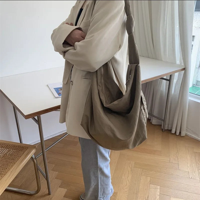 Experience the soft texture and retro style with this large-capacity woman shopping dumpling bag featuring a nylon shoulder strap. Perfect for everyday use.