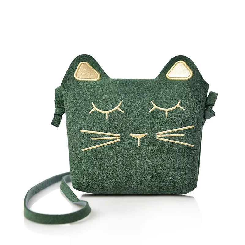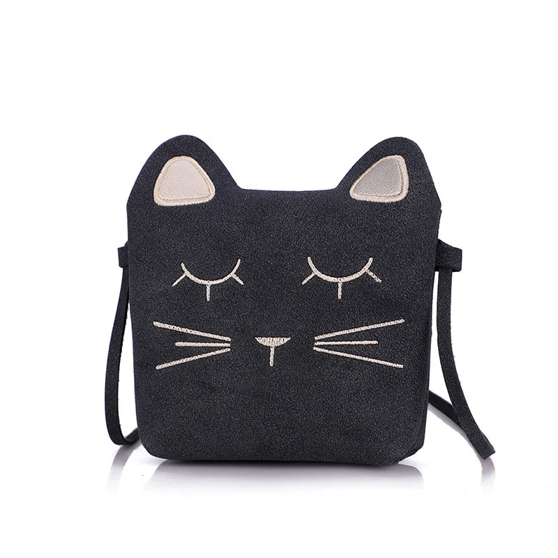 Adorable one-shoulder bag for kids featuring a cute cartoon design, perfect for spring and summer. Made of high-quality frosted leather with embroidered kitten detail.