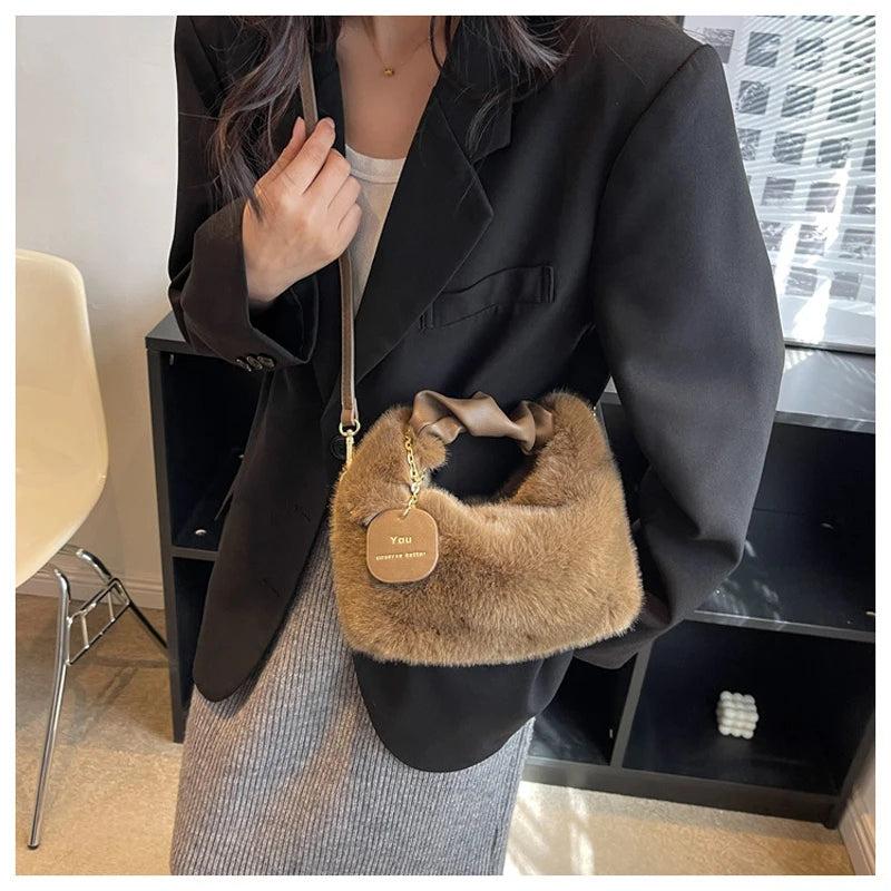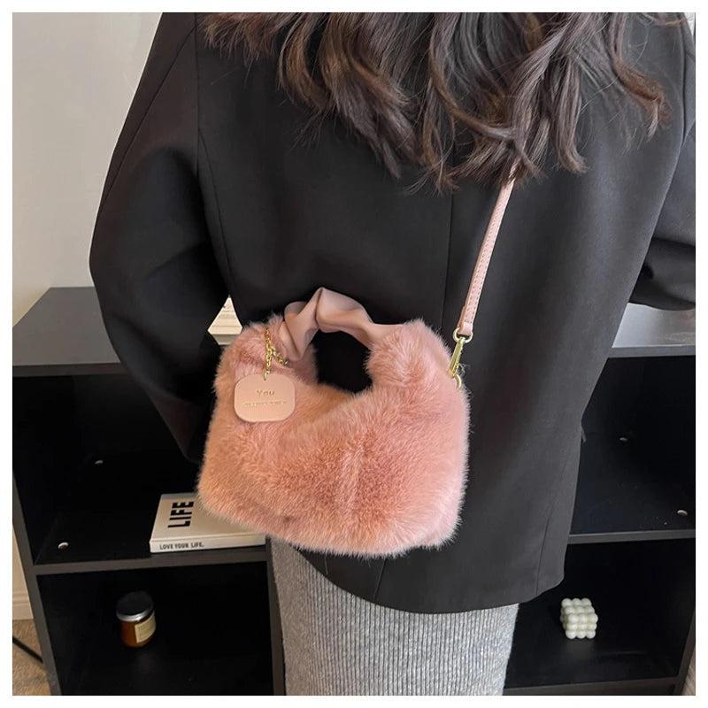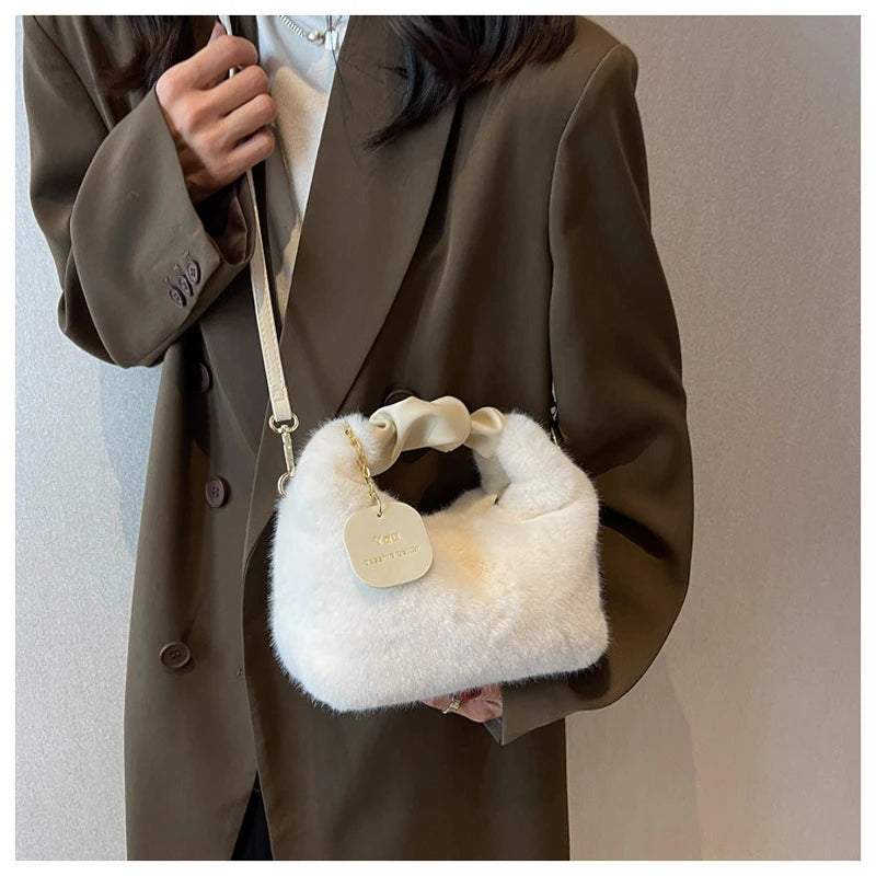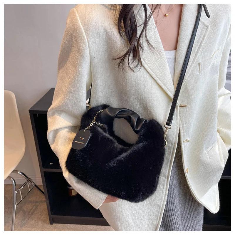 Elegant and stylish one shoulder bag made from pleated oblique span with plush fabric. Perfect for girls who want to make a fashion statement.