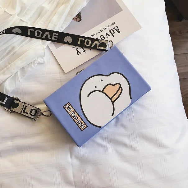This stylish bag features a one-shoulder design with a wide strap and a unique revenue stamp printing. Perfect for students and casual occasions.