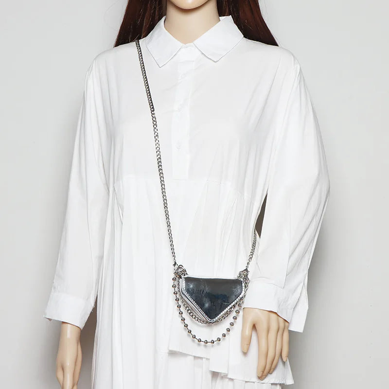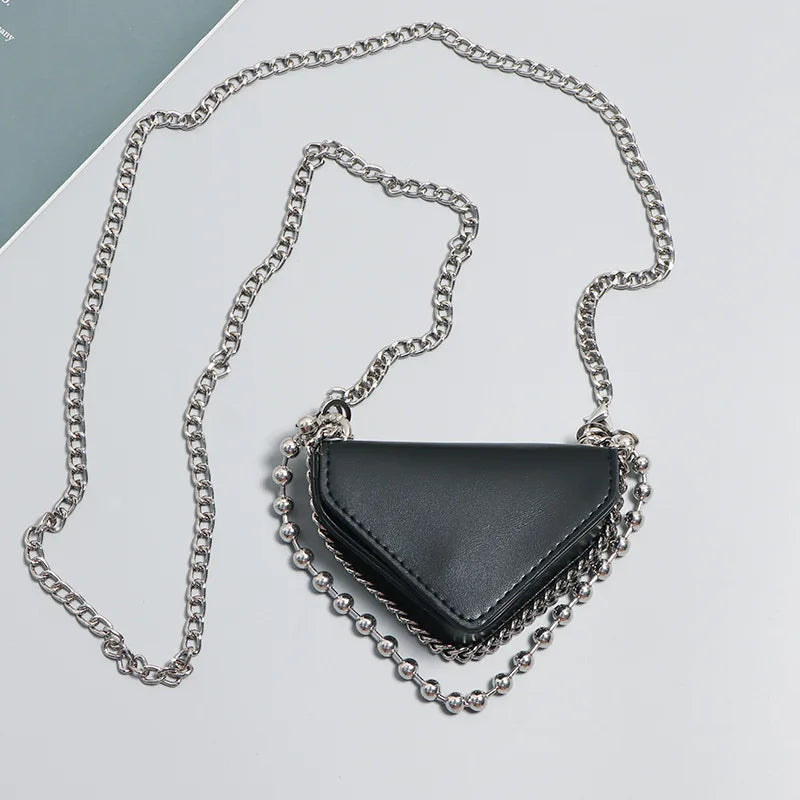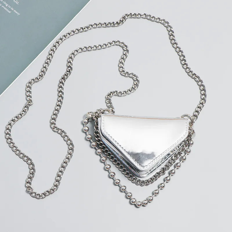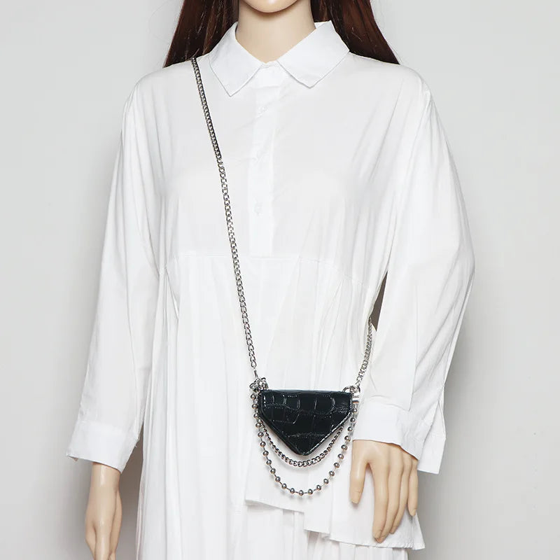 Stay stylish with our trendy crocodile-patterned belt bag made of high-quality patent leather. This versatile triangle bag features a round chain strap for a chic crossbody look.