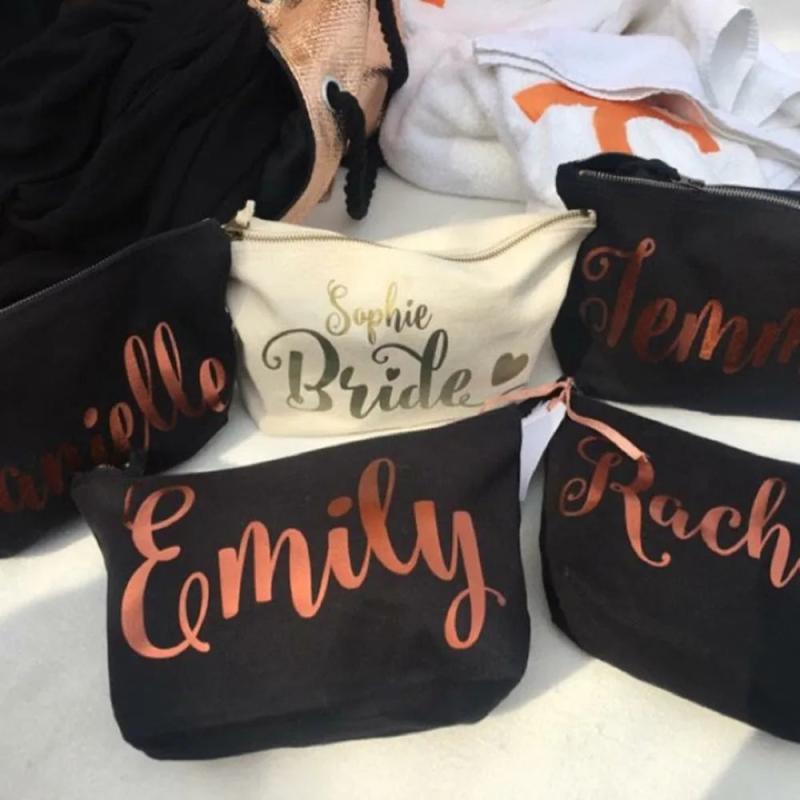 Description:This elegant foil wedding cosmetic make up bag is a perfect gift for the mother of the bride. It can also be used as a birthday gift, bridesmaid makeup bag, or flower girl toiletries bag.Features: Customized with the recipient's name or initials in beautiful foil lettering Ideal for storing makeup,...