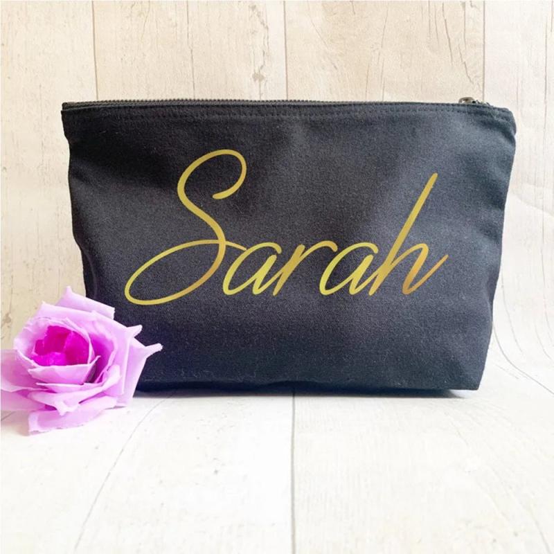 This navy makeup bag is a perfect Christmas gift for bridesmaids. Personalise it with a monogram for a special touch.