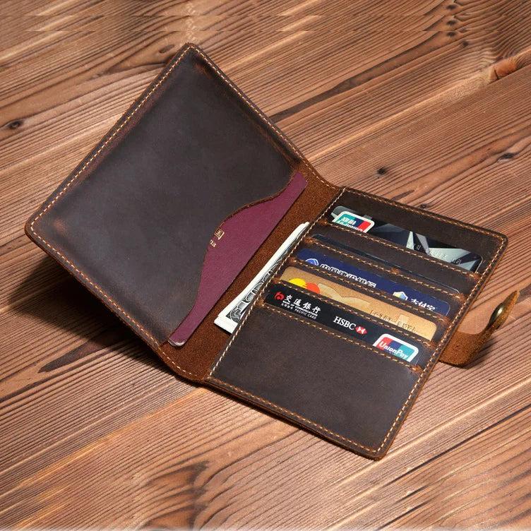 Upgrade your travel style with this personalized leather passport cover designed for men. The hasp closure adds a touch of sophistication while keeping your passport secure.