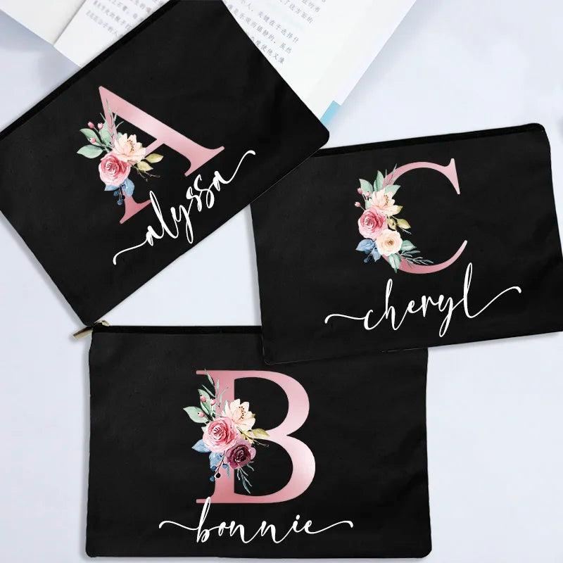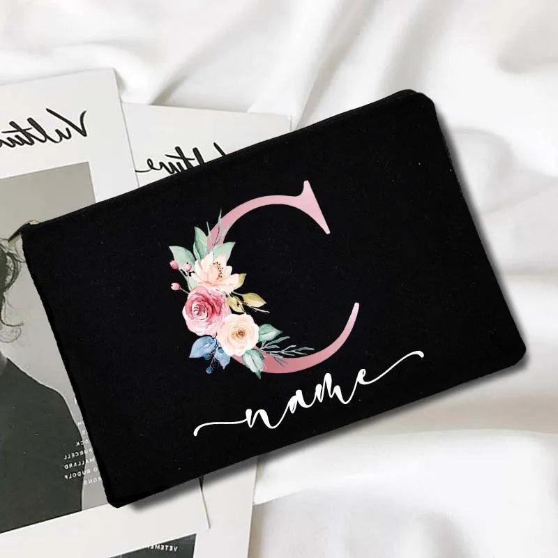 Personalized Name Letter Print Makeup Bag Organizer Wash Storage Pouch