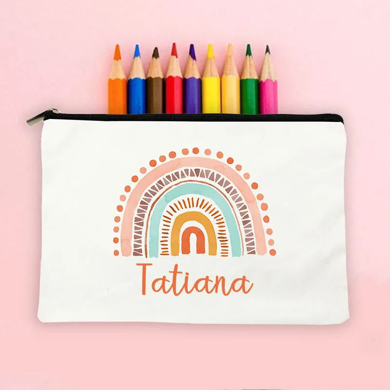 Personalized Rainbow Pencil Bag with Name Student Storage Case