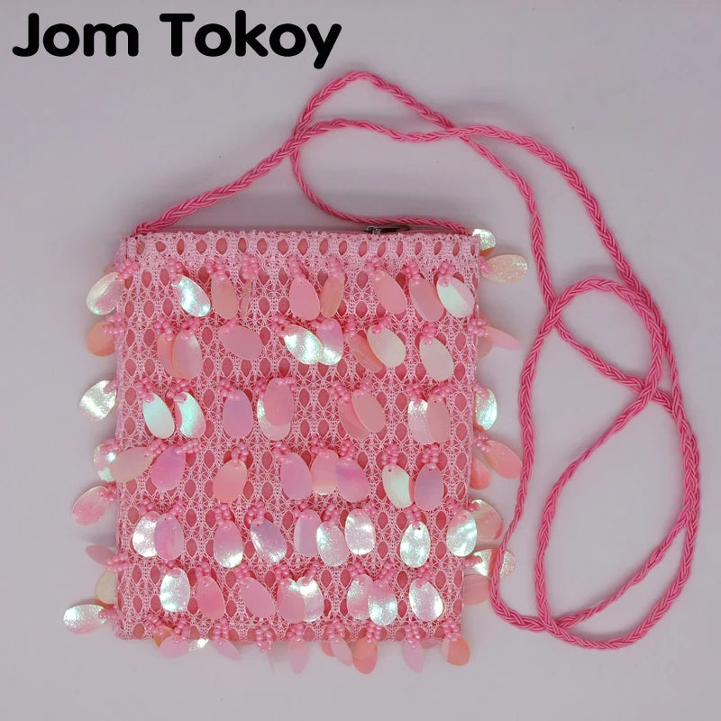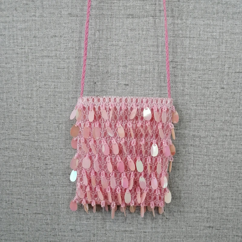 Add a touch of sparkle to your look with this pink sequins beaded bag. Perfect for a stylish girl who wants to stand out.