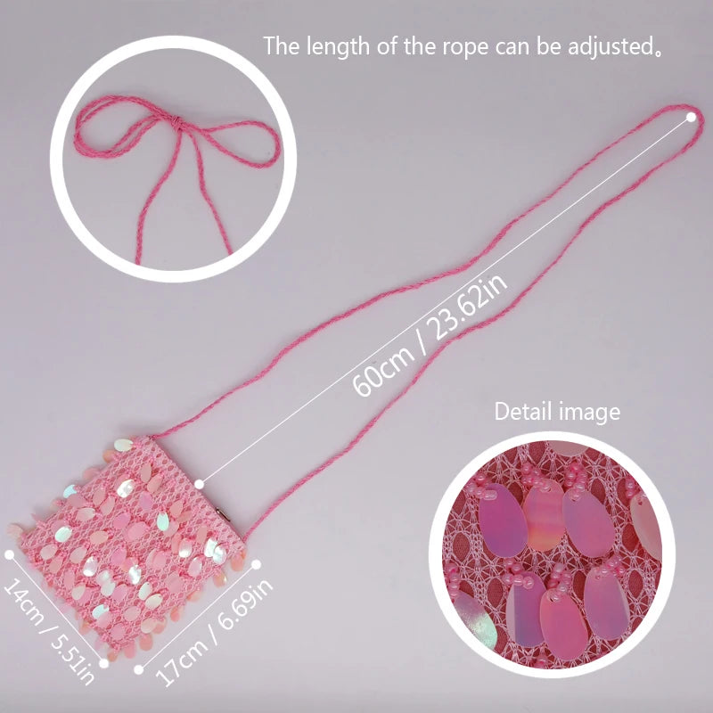 Pink Girl Sequins Beaded Shoulder Messenger Bag