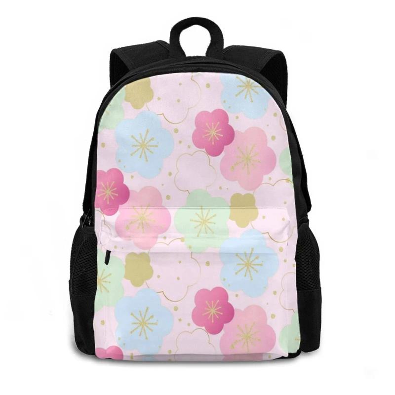 Pink & Mint Green Japanese Floral Pattern School Bags for Teenage Girls