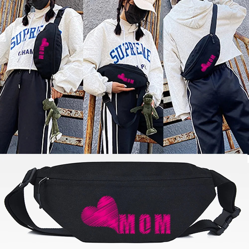 Pink Mom Letter Print Waist Bags Chest Bags Unisex Shoulder Crossbody Bag