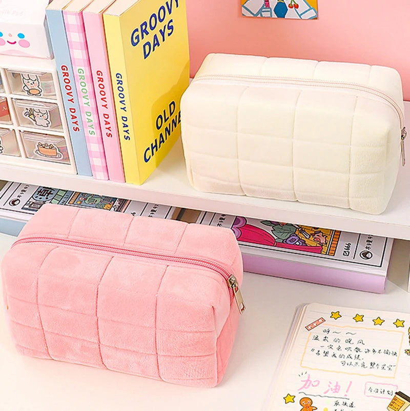 Pink Plush Makeup Bag Pencil Case Student Storage Soft Organizer