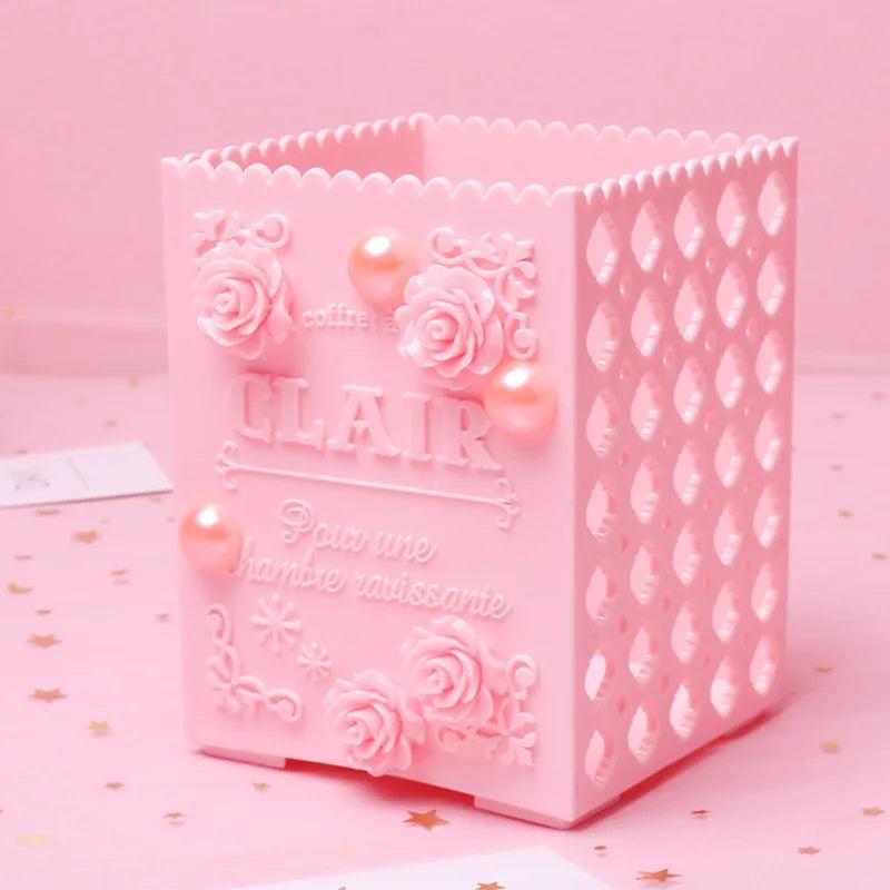 This pink pen pencil holder is a creative DIY organizer suitable for girls. It can also be used for storing cosmetics and other sundries. The rose flower design adds a touch of elegance to your desk or vanity.