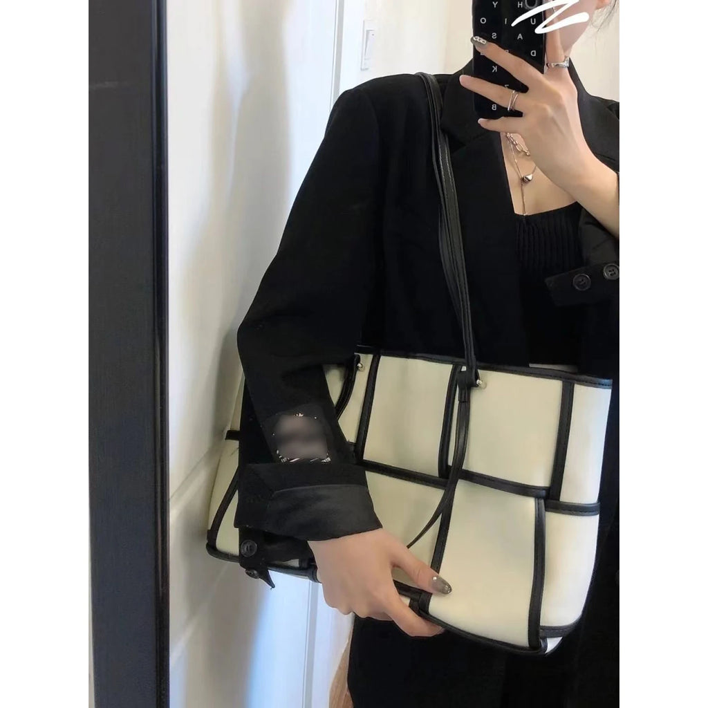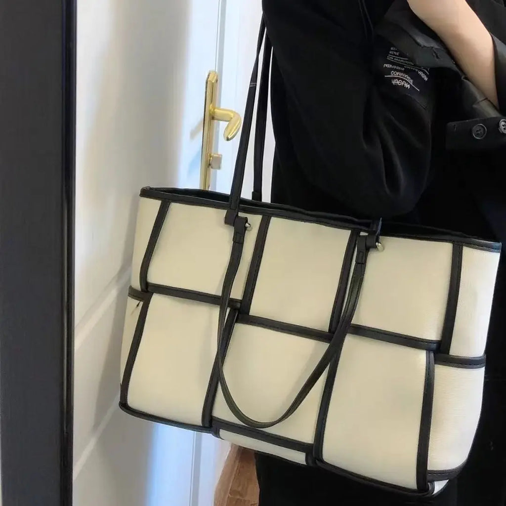 Plaid Canvas Tote Bag Large Capacity Shoulder Bag Commuter Texture Purse