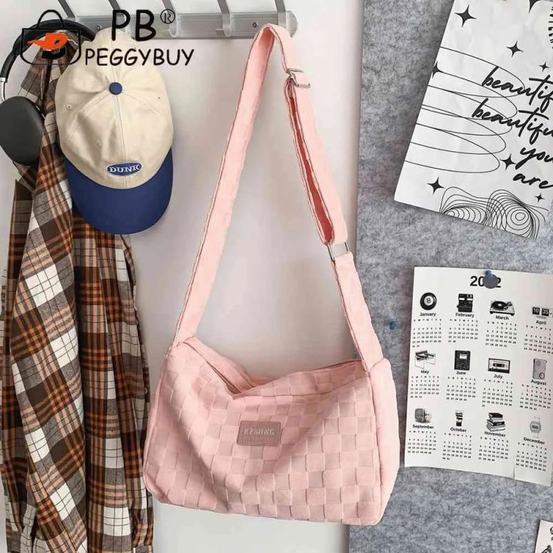 This stylish pillow-shaped tote bag is perfect for daily travel and shopping. It features a casual plaid design that adds a touch of charm to your outfit.