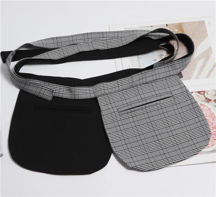 Plaid Fabric Bow Waist Bag Packs with Self-tie Waist Belt