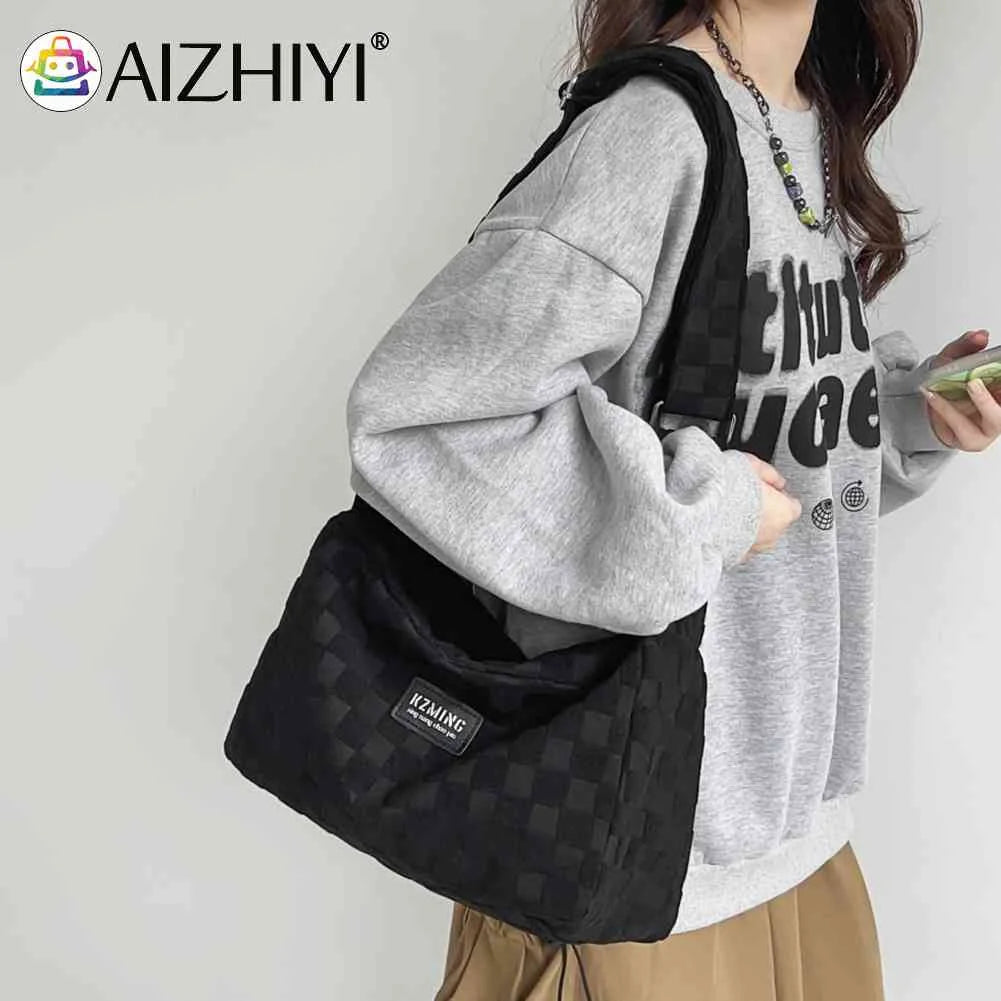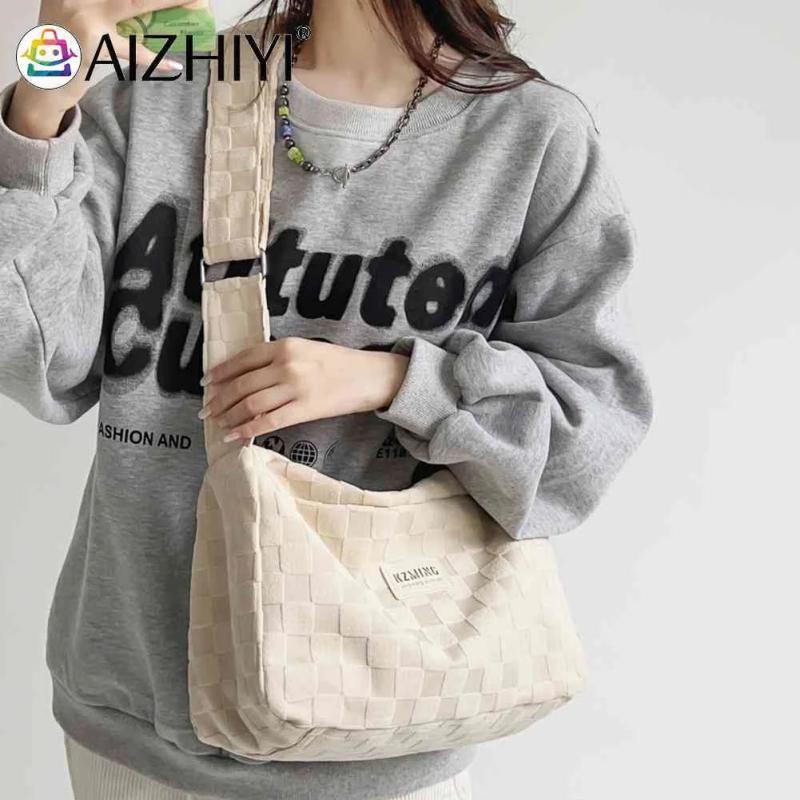 This stylish crossbody bag features a casual plaid design, perfect for daily use and shopping. It is a pillow-shaped tote with a zipper closure, ideal for ladies and girls on the go.