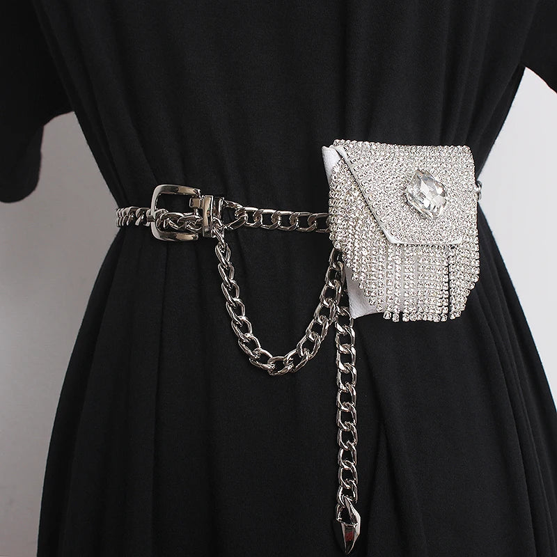 Elevate your style with this sparkly belt bag that doubles as a fragrance holder. The perfect accessory for a trendy look!
