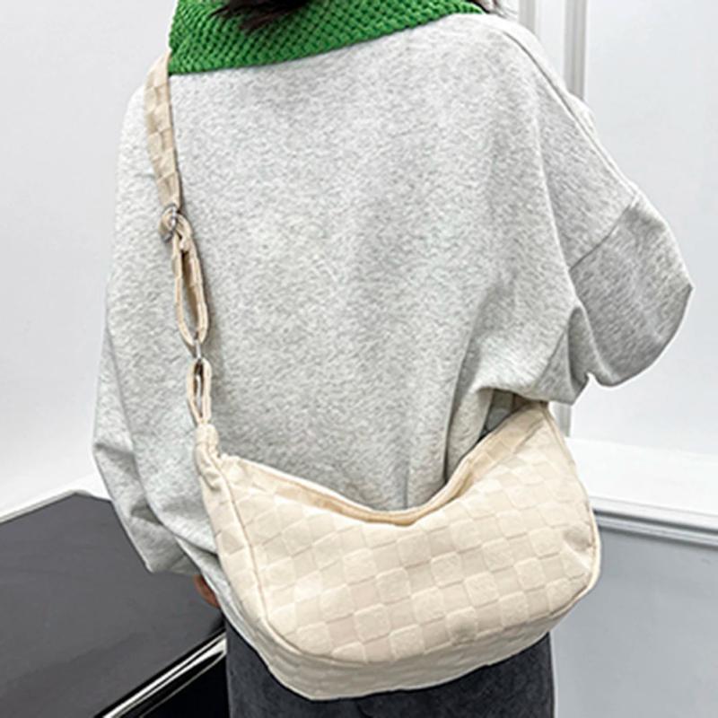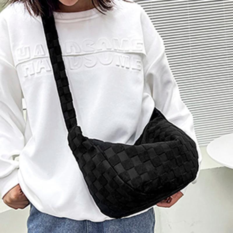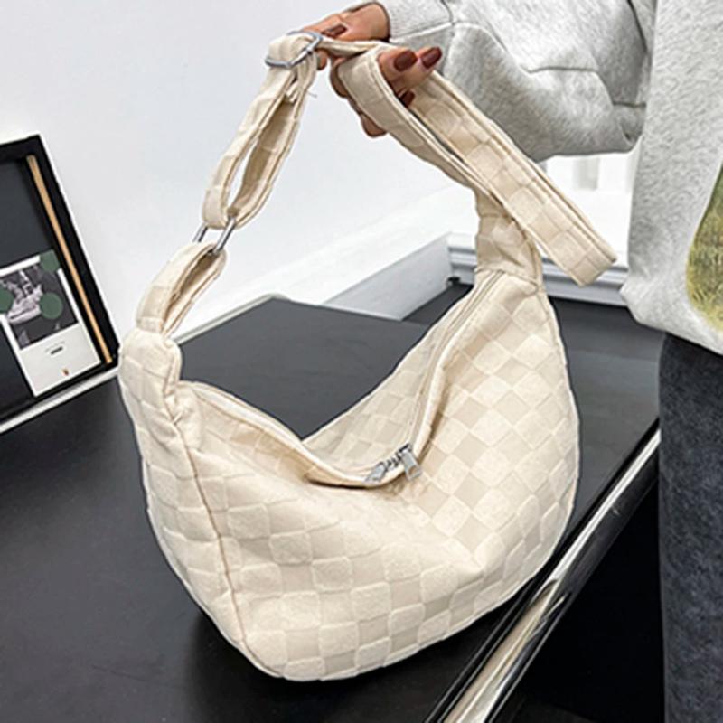 Plaid Woolen Cloth Messenger Bag Large Capacity Casual Tote Bag