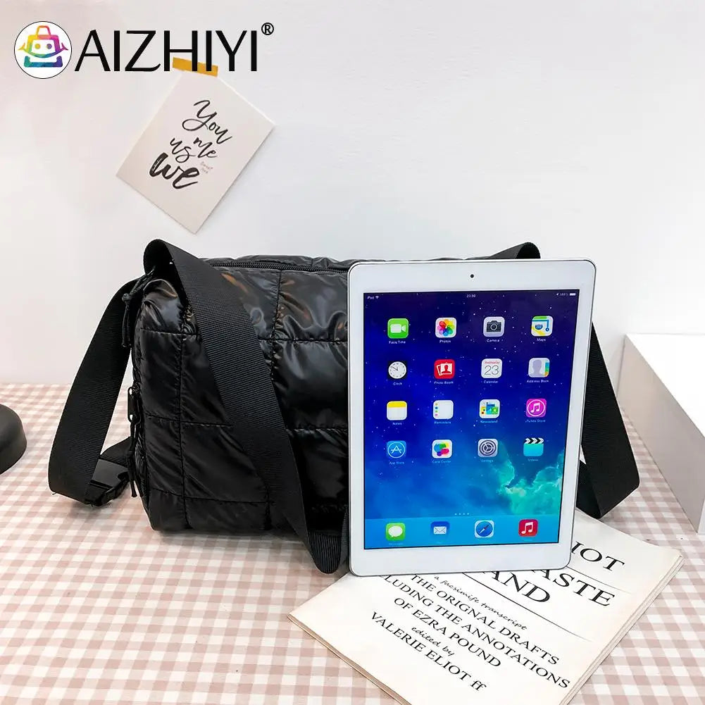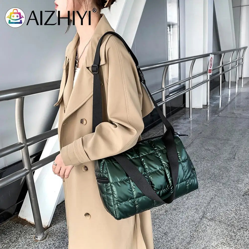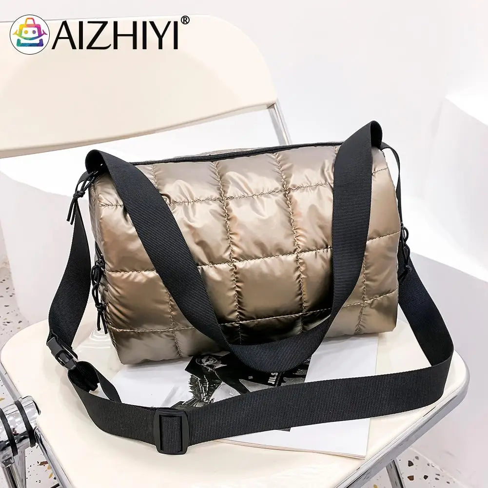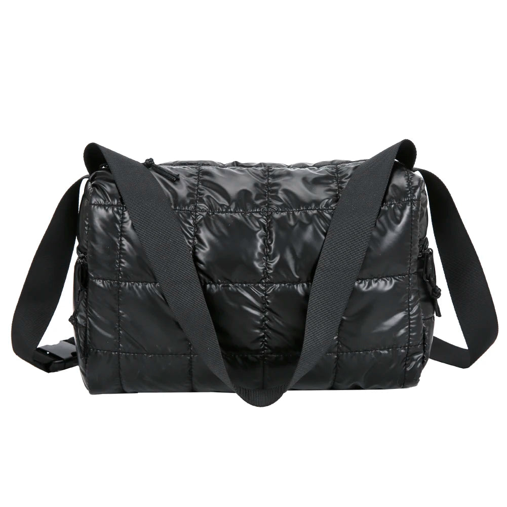 Pleated Quilted Cotton Padded Grid Crossbody Bag