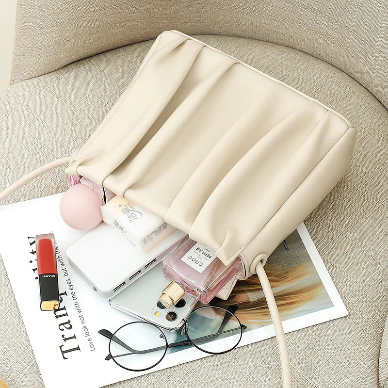 Pleated Shoulder Bag PU Leather Underarm Bag