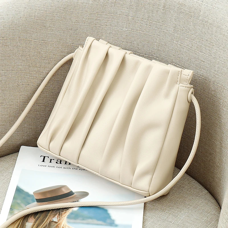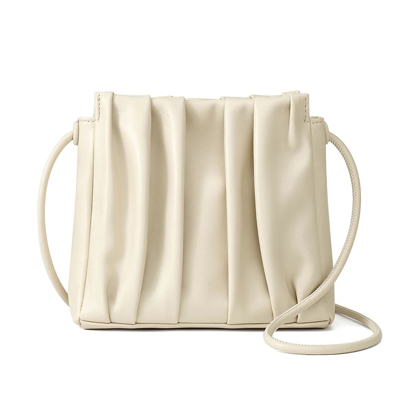 This pleated shoulder bag features a soft leather feel, perfect for daily commuting.
