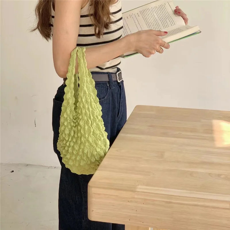 Pleated Stretch Shopping Bag Large Capacity Bubble Elastic Paddy Bag