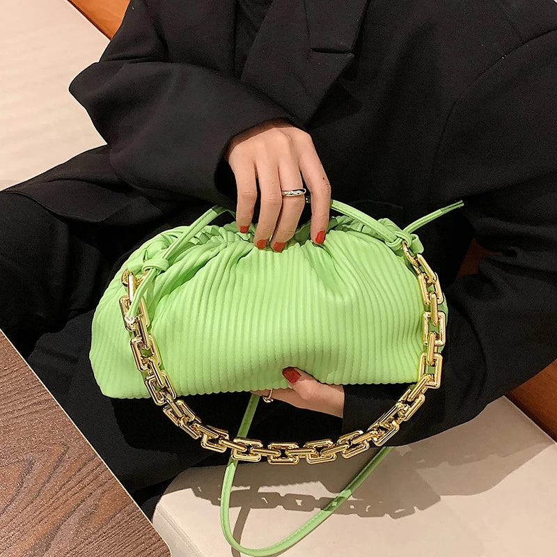 Pleated Underarm Shoulder Bag Thick Chain Cloud Bag Female Crossbody