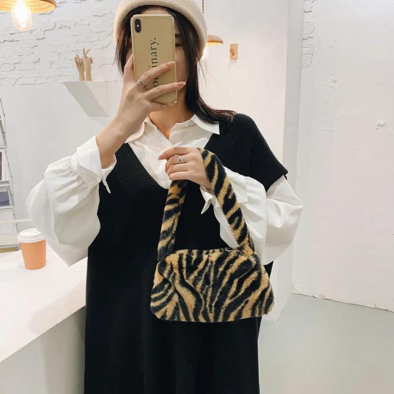 Stay stylish with this plush underarm bag featuring animal print design. Perfect for carrying essentials in a compact and trendy way.