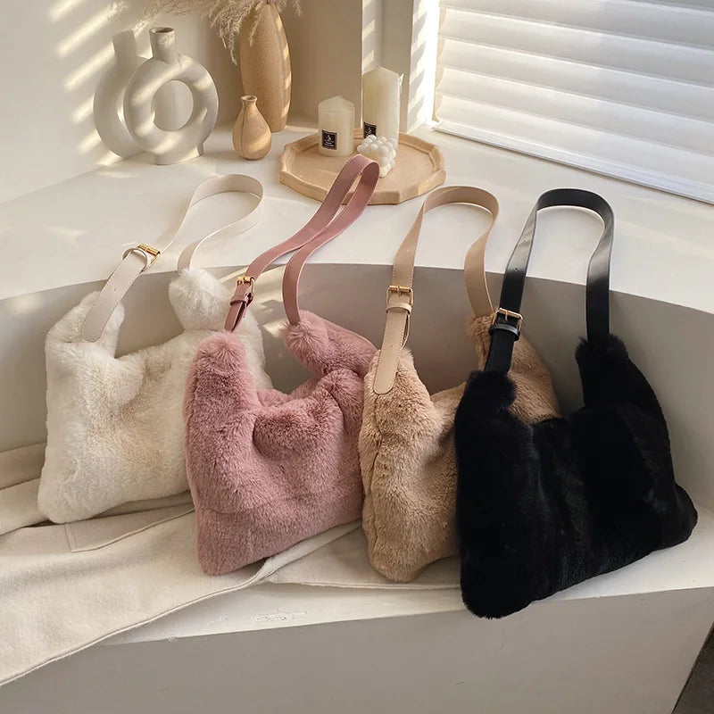 Stay cozy and stylish with this large-capacity plush messenger bag, perfect for autumn and winter. Its one-shoulder design adds a touch of Western wild to your outfit.
