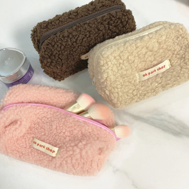 This lamb hair cosmetic bag is perfect for storing your makeup, stationery, or other essentials. It has a cute plush design and offers ample capacity for all your items.