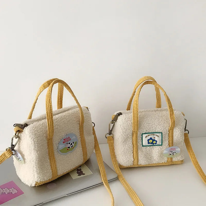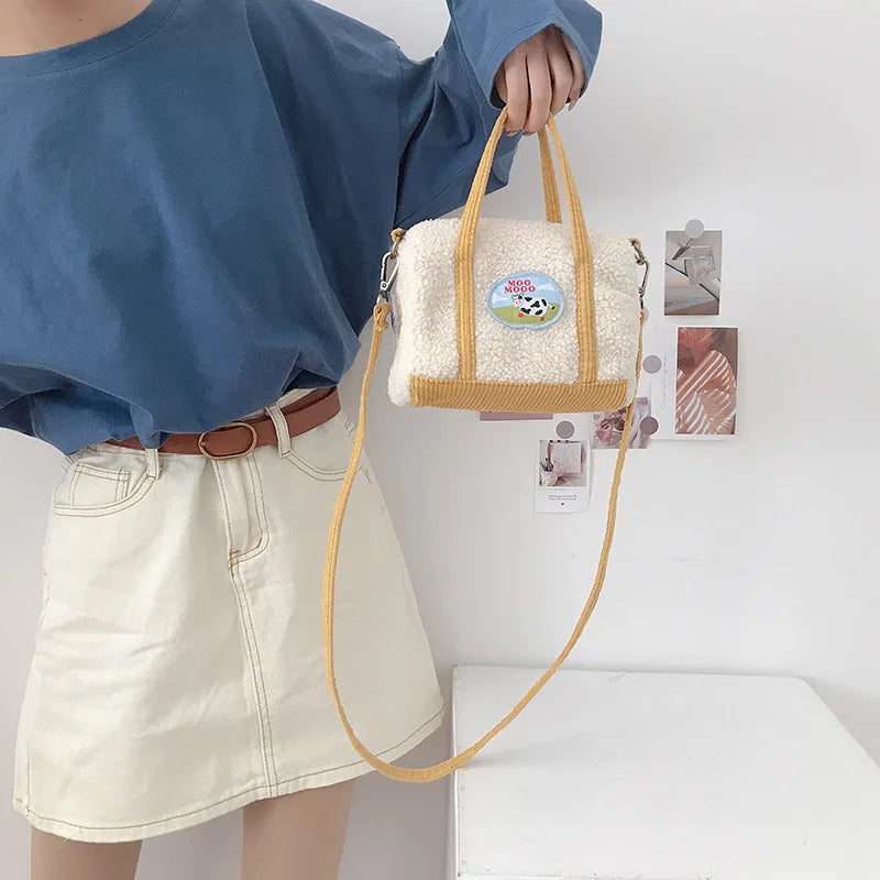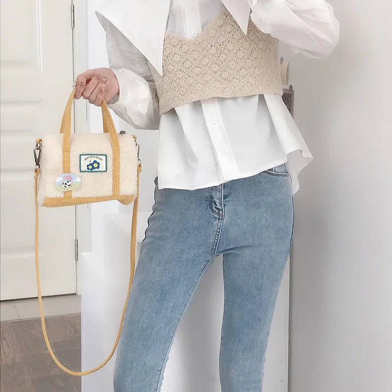 Plush Mini Messenger Bag Retro Style Diagonal Shoulder Bag