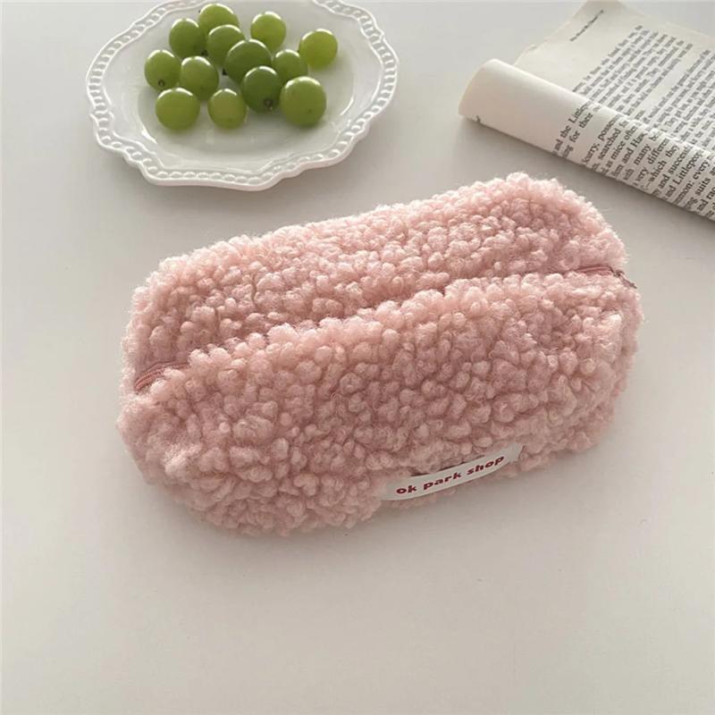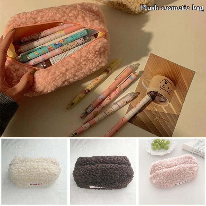 This plush pencil case is perfect for storing makeup items. Its soft and stylish design adds a touch of luxury to your beauty routine.
