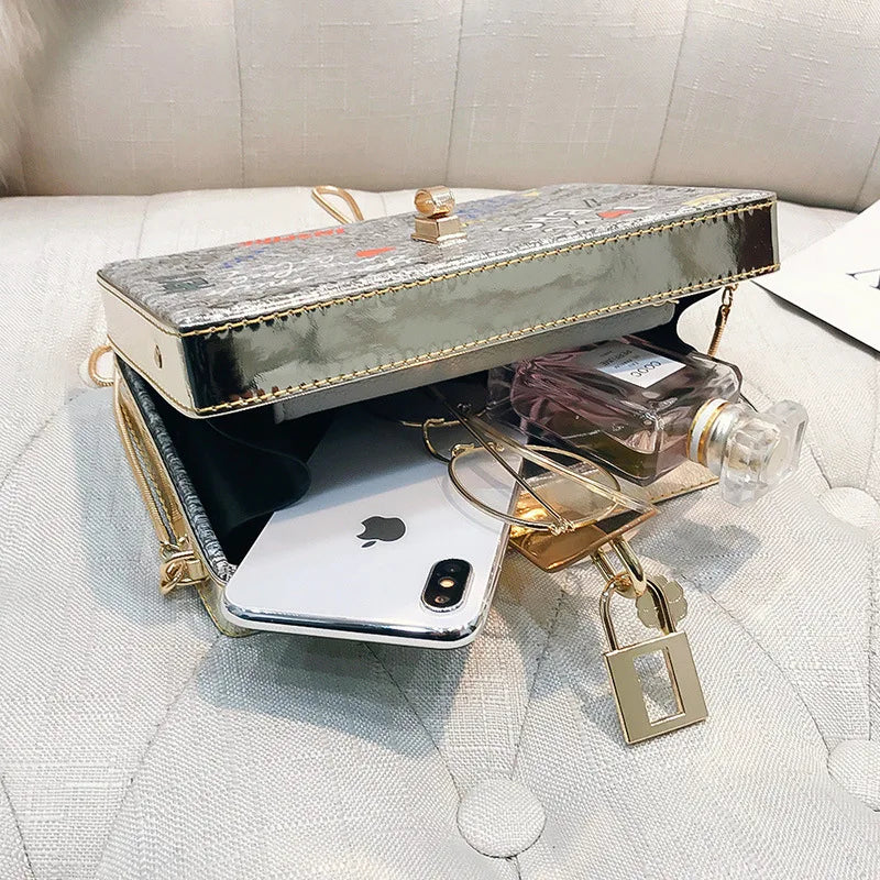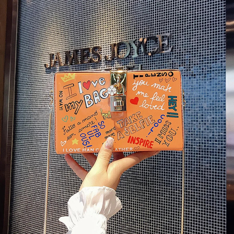 PU Leather Box Bag Chain Shoulder Graffiti Messenger Bag