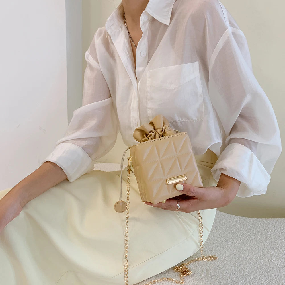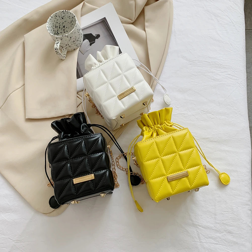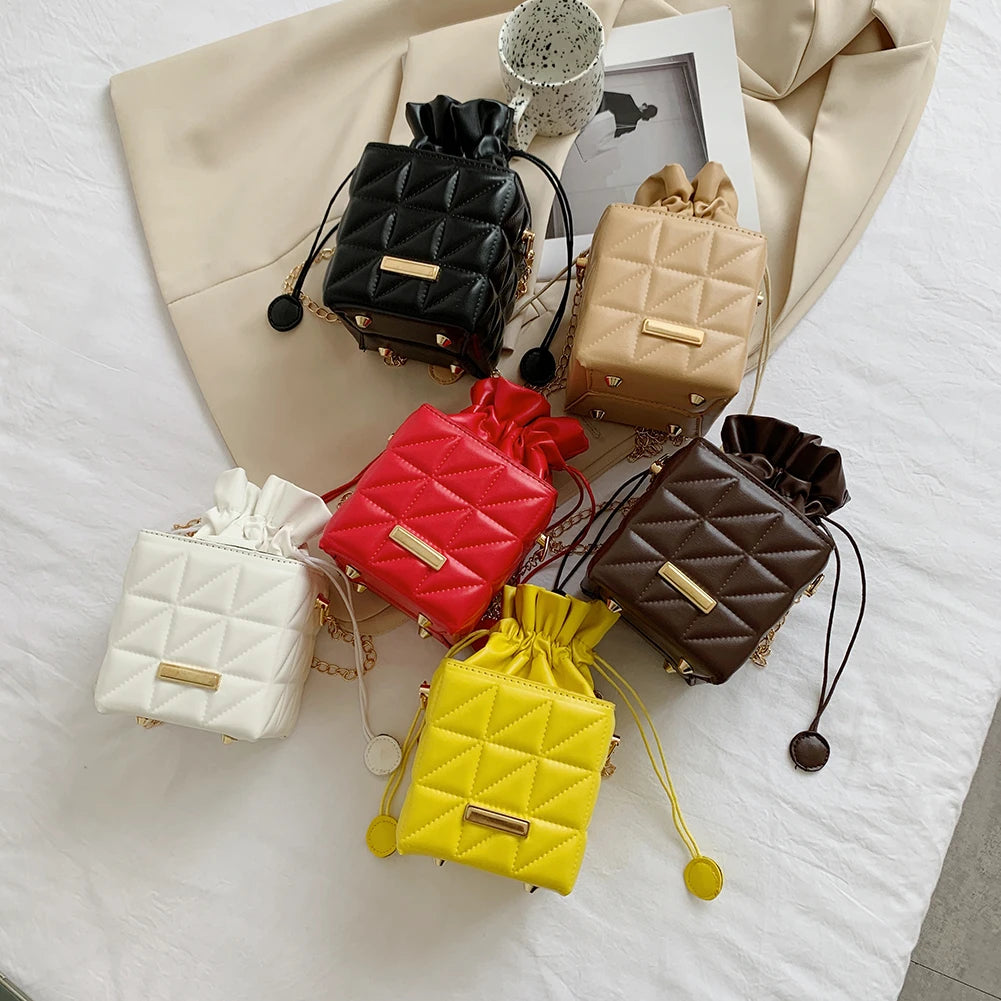 Stay stylish and organized with this solid square drawstring shoulder bag. It's perfect for daily use and adds a touch of elegance to your outfit.
