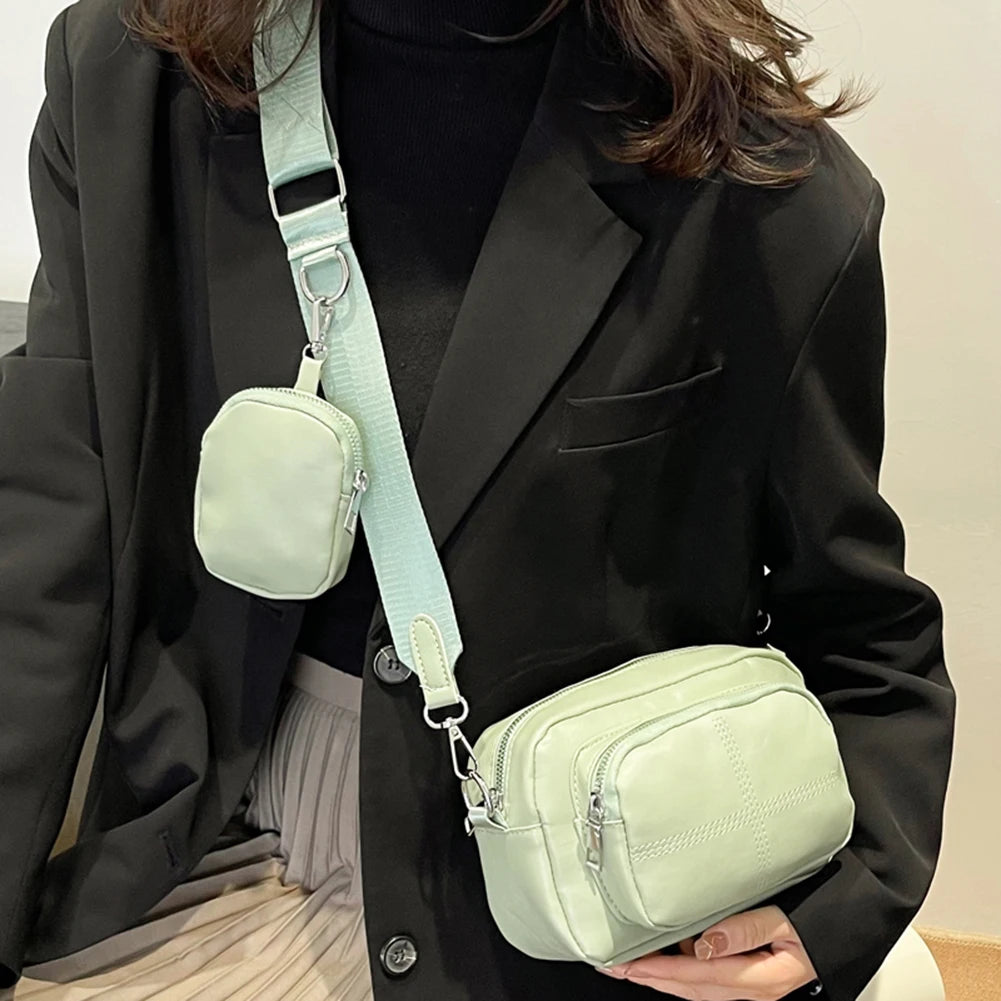 Stay stylish and practical with this PU leather hand bag featuring multiple pockets and a mini purse pendant. Perfect for casual everyday use.