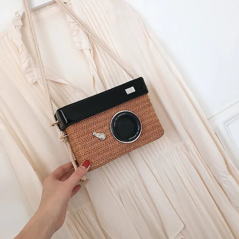 PU Leather Shoulder Bag Straw Camera Bag Girl Diagonal