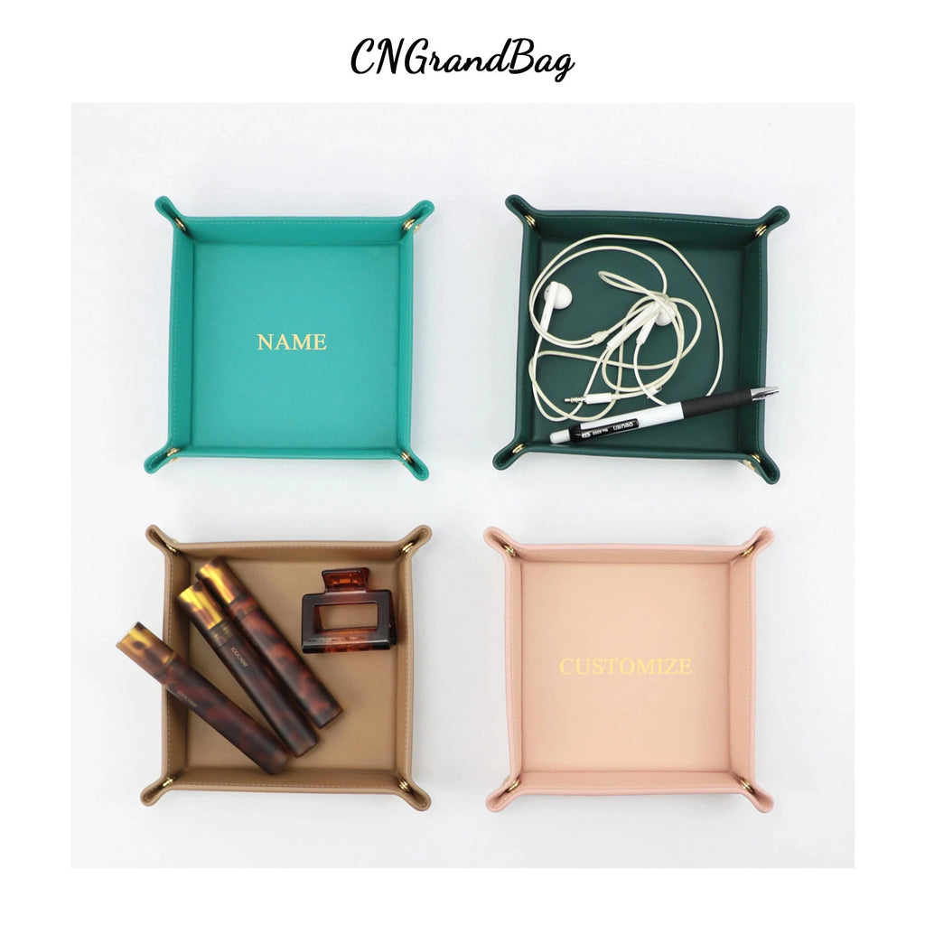 Keep your jewelry organized and easily accessible with this stylish PU leather tray. Perfect for storing rings, earrings, bracelets, and more.