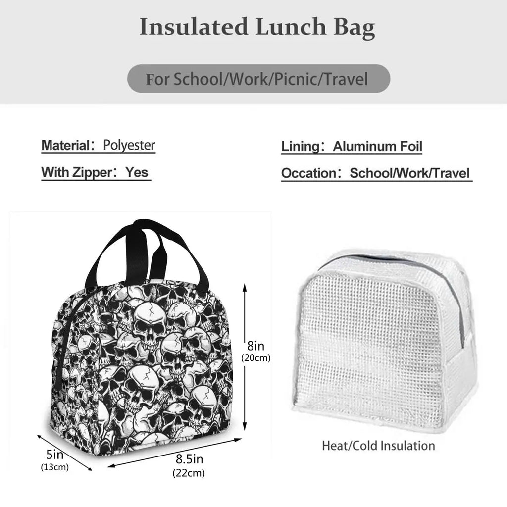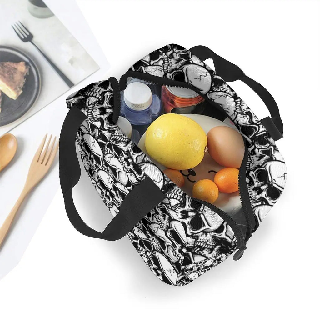 Punk Skull Print Insulated Lunch Bag Cooler Waterproof Picnic Food Storage